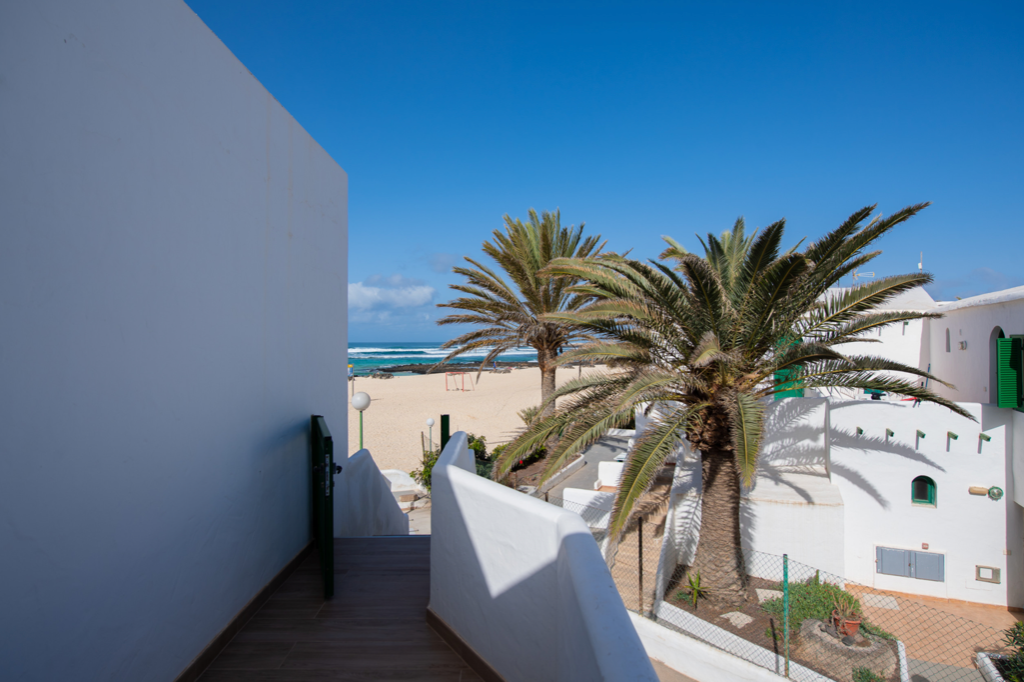 Nuestro alojamiento se encuentra en una ubicación privilegiada, en primera línea de playa con vistas al mar, justo frente a la Playa El Cotillo, pudiendo acceder a la playa caminando directamente desde el alojamiento.